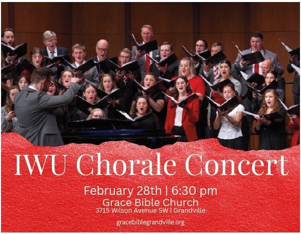 Experience the musical excellence of the IWU Chorale at Grace Bible Church on February 28, at 6:30 pm.